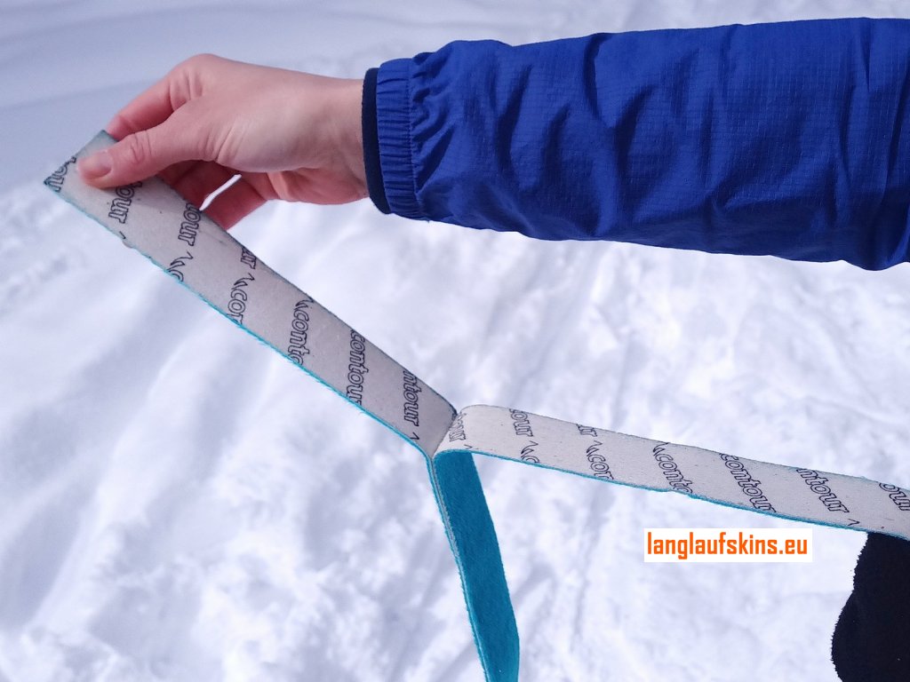 Einschließlich des Klebers, der sich bereits auf dem Gurt befindet. Der Kleber wird niemals dauerhaft auf dem Langlaufski bleiben.