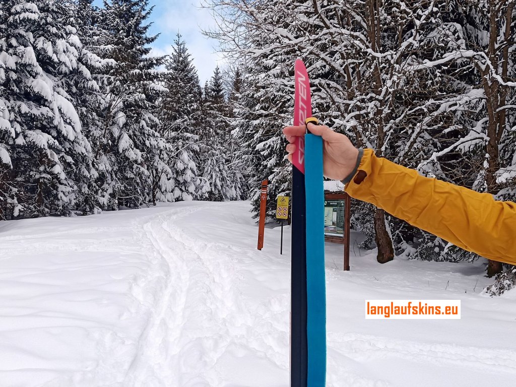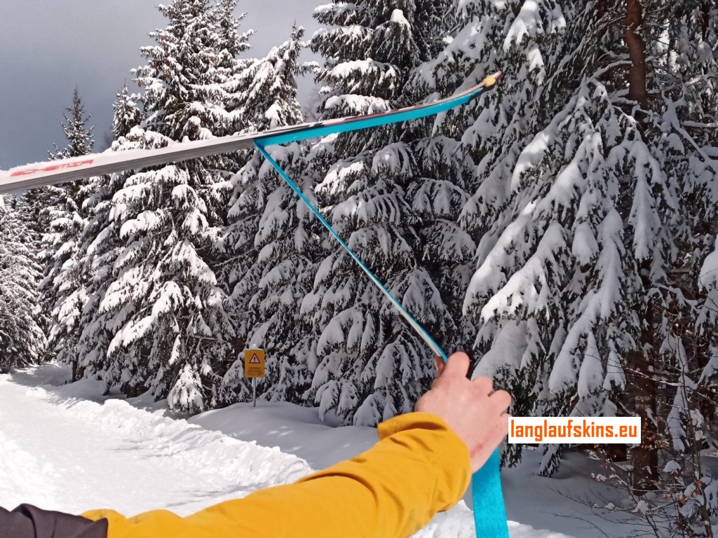 Einschließlich des Klebers, der sich bereits auf dem Gurt befindet. Der Kleber wird niemals dauerhaft auf dem Langlaufski bleiben.